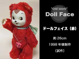 | ポップなお人形作品 『ドールフェイス(赤)』 1998年前後制作 全高26センチ 鮮やかな赤モヘアのお人形作品。 アメリカンキャラクターの影響を強く受けた作品です。 顔色の悪さ?は灰色を混ぜた肌色で塗られたもの。 古いコンポジションドール等を意識した表現です。 おしりの布タグも初期のスタンプ押しタイプ。 【仕様】顔、手:レジンキャストを使用。 赤毛ディストレスモヘア使用。 首、手足ディスクジョイント式。詰め物はワタ。 現在のロゴ(樹脂製)付属。 【状態】比較的きれいな状態。 |